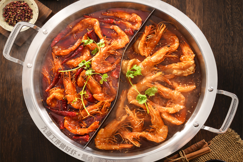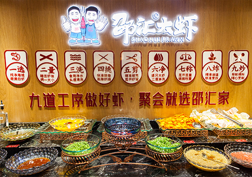 邵匯大蝦擁有強大的后勤保障部門,核心底料由公司中央工廠集中配送,食材精選進口大蝦,搭配秘制底料制作而成,研發(fā)出一鍋兩吃的飲食模式(先吃蝦后涮菜,葷素搭配隨心選),打造出綠色健康的飲食新文化。